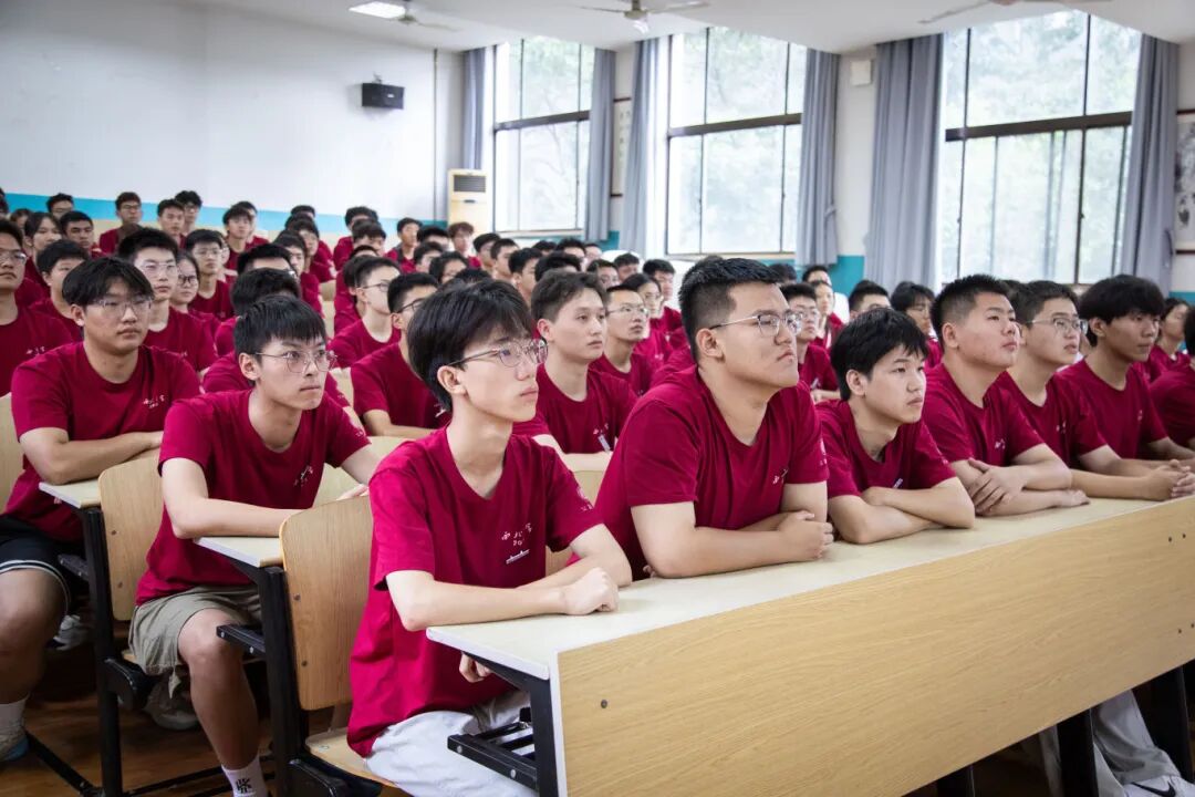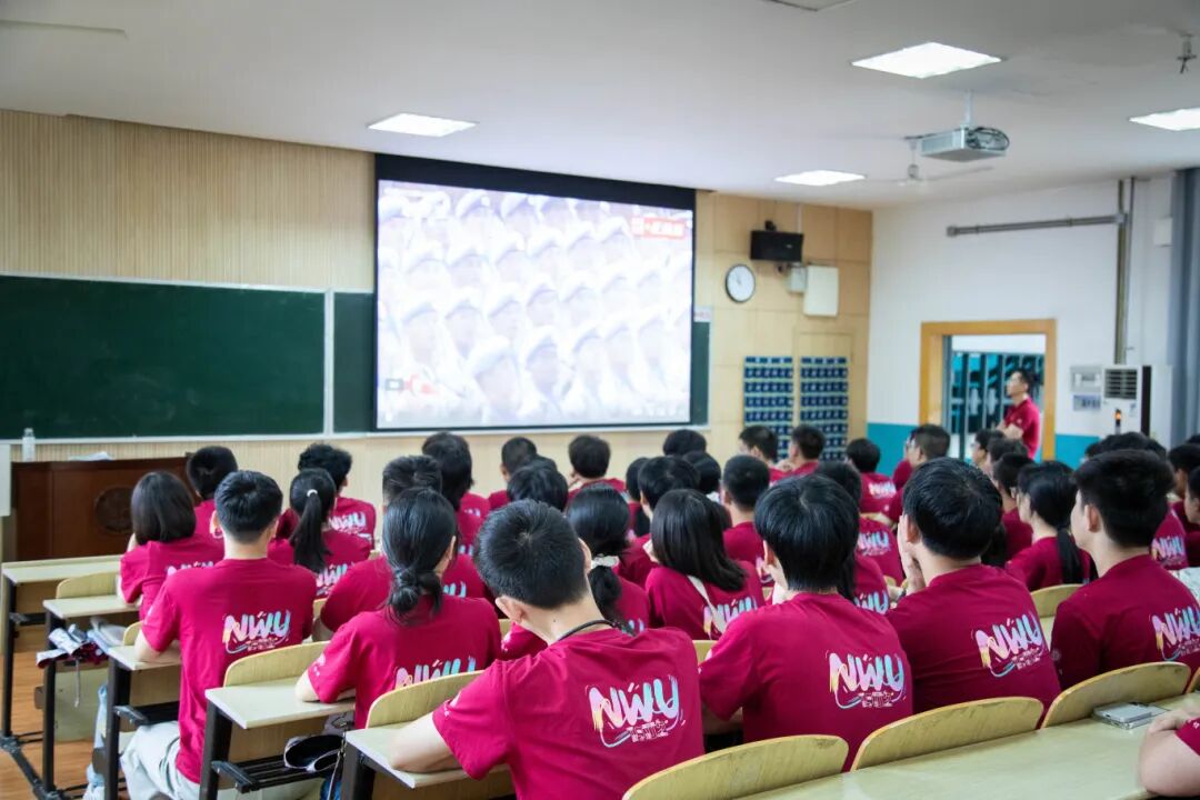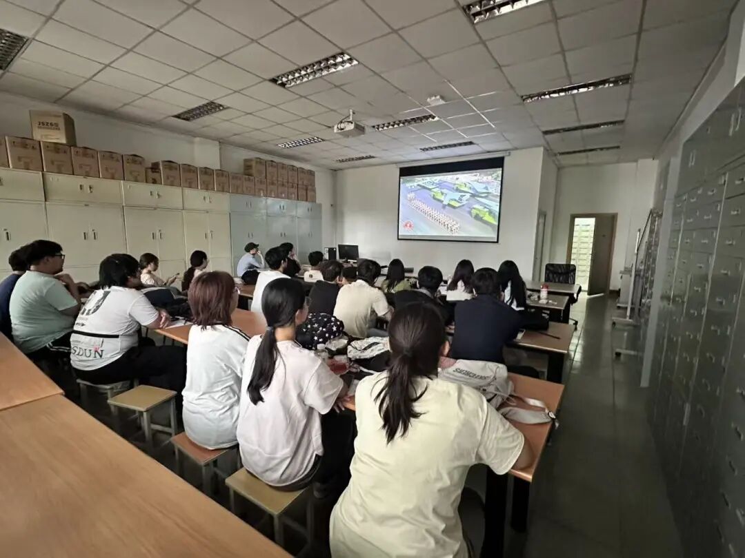 上午9时,直播准时启动,大屏幕上的历史画面刚一出现,师生们的眼神便立刻被吸引,满是对这段峥嵘历史的敬重。在观看直播的过程中,师生们全神贯注,报告厅内安静肃穆。