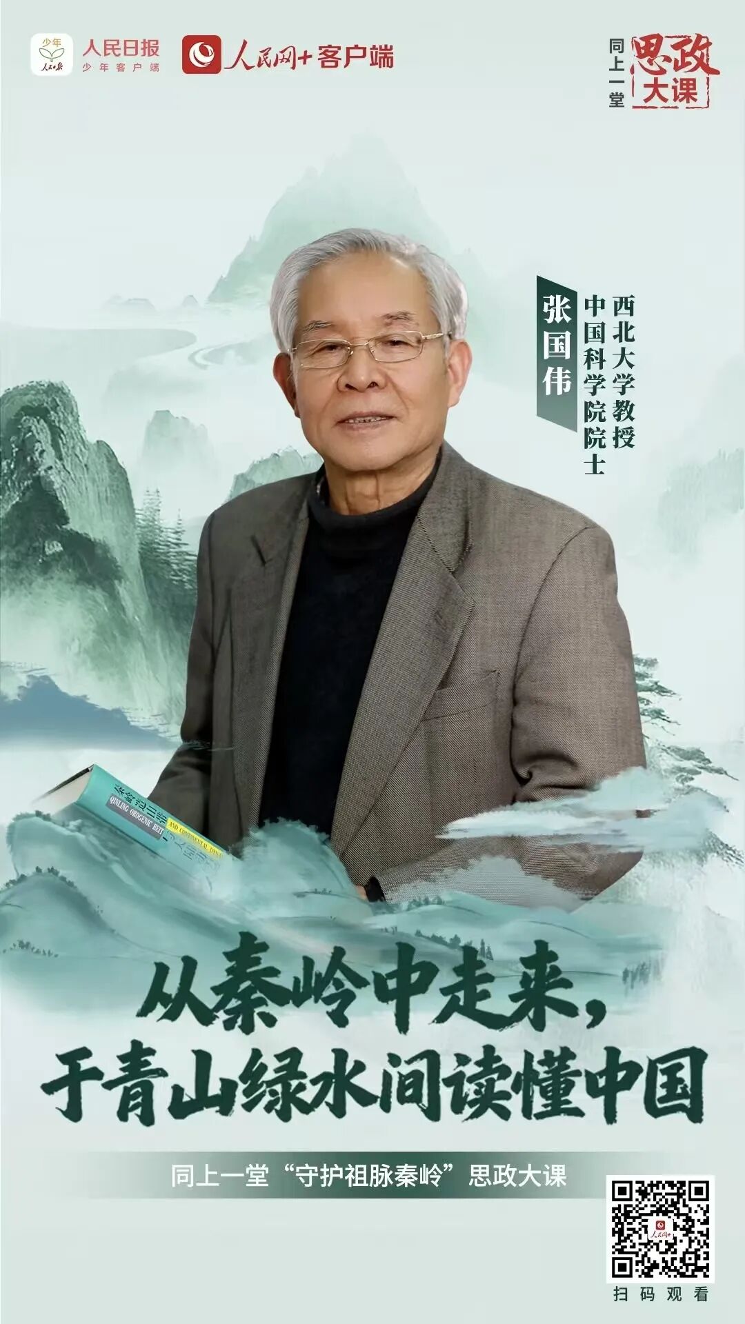 本次思政大课特邀中国科学院院士、我系教授张国伟领衔主讲,与哲学学院副教授曹振明、中国科学院西安分院二级研究员陈怡平组成主讲团队,从地质地理、生物多样性、文化象征三大维度,深情讲述“一座山撑起一个国,一片绿照见复兴路”的动人故事。