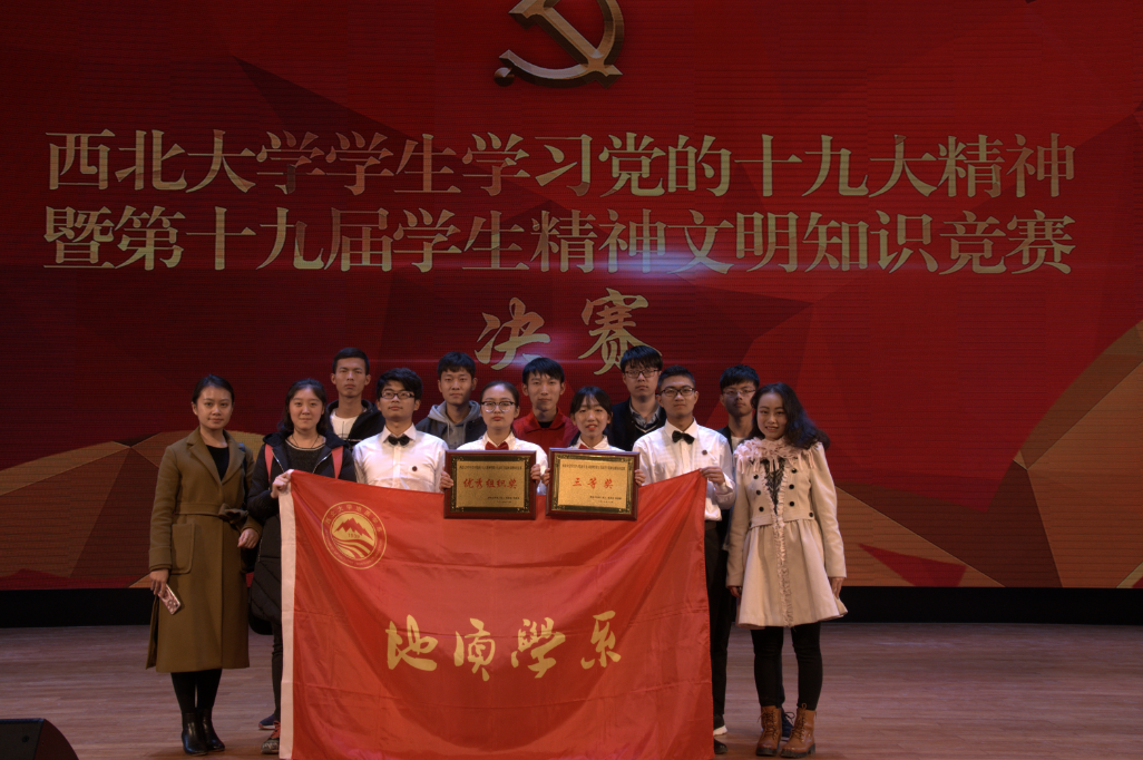 11月23日,由学生工作部(处)、教务处、校团委主办的西北大学学生学习党的十九大精神暨第十九届学生精神文明知识竞赛决赛,在长安校区学生活动中心报告厅成功举办。我系代表队经过初赛、决赛的激烈角逐荣获三等奖,我系获得优秀组织奖。