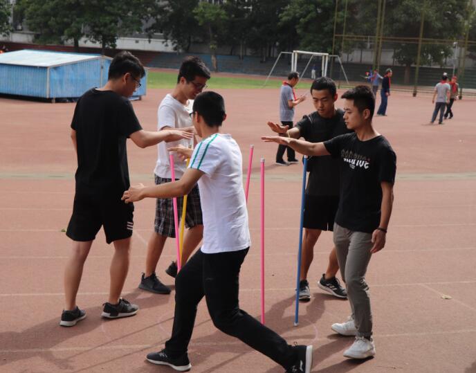 本届趣味运动会以感受运动乐趣放飞内心梦想为主题。比赛项目设计别出心裁,注重同学们在比赛过程中的体验和感受,有需要团队高度配合的五人不倒森林项目,有节奏飞快的趣味赛跑项目,还有趣味性十足的背夹篮球定点投篮、乒乓球推挡、夹乒乓球跳绳混合接力等项目。活动中,研究生与本科生积极参与,热情高涨,奋力拼搏,整个场面热闹非凡。