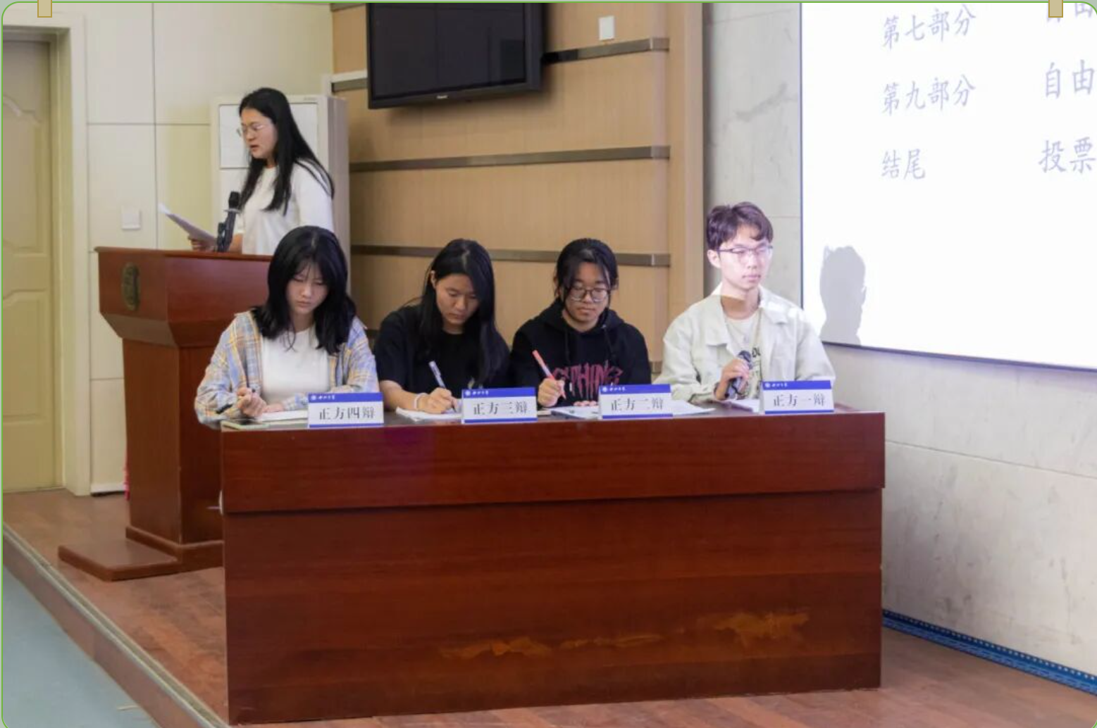 本次辩论赛围绕社会热点、校园问题及个人成长困惑展开,内容涵盖环境保护、学业压力等多个领域。同学们以理服人、以情动人,展现了新时代大学生的思辨风采。
