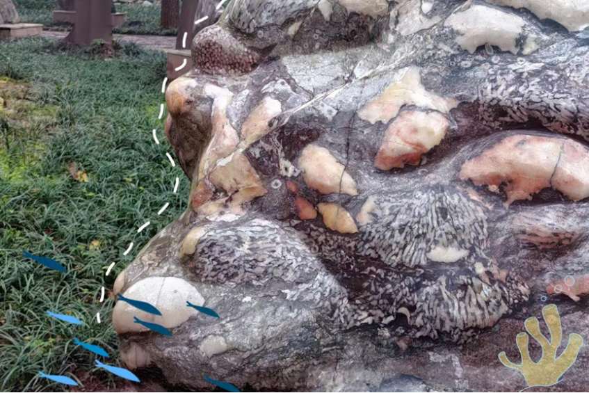 珊瑚化石清晰可见,生动呈现了沉积岩记录古地理的功能.