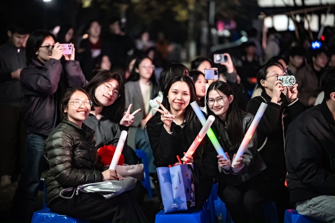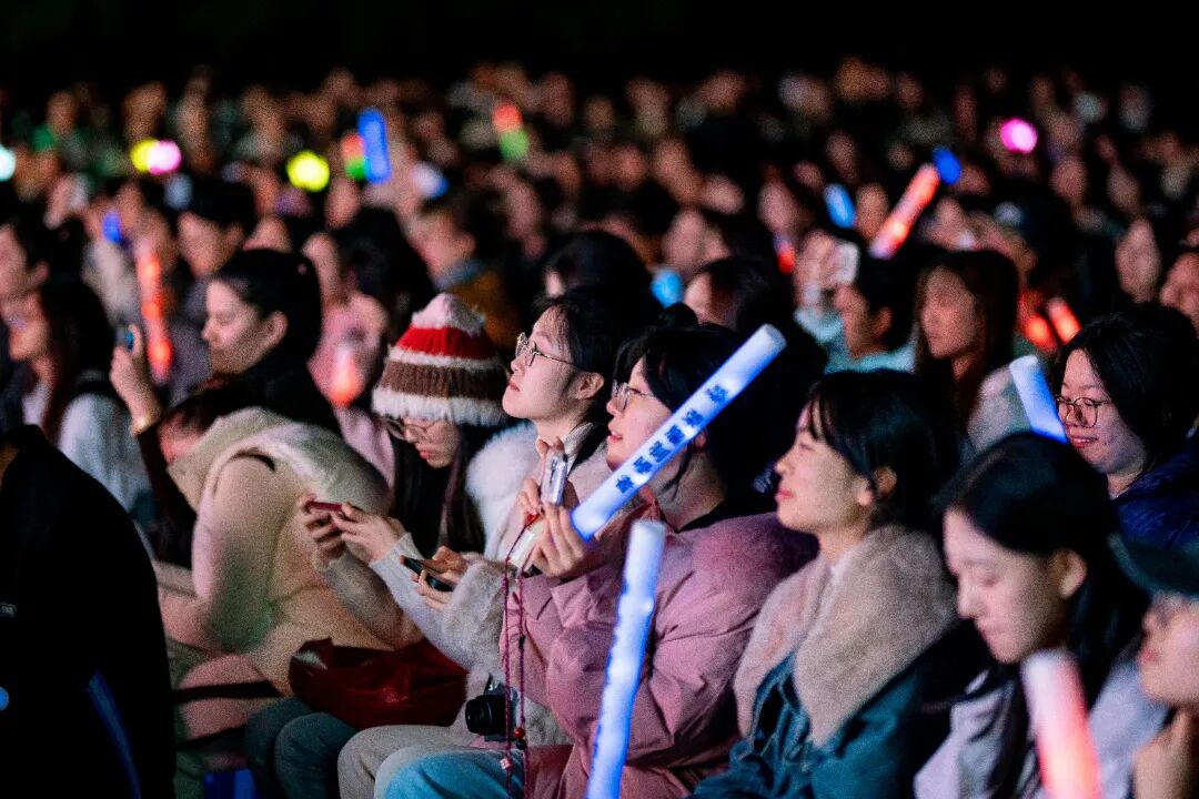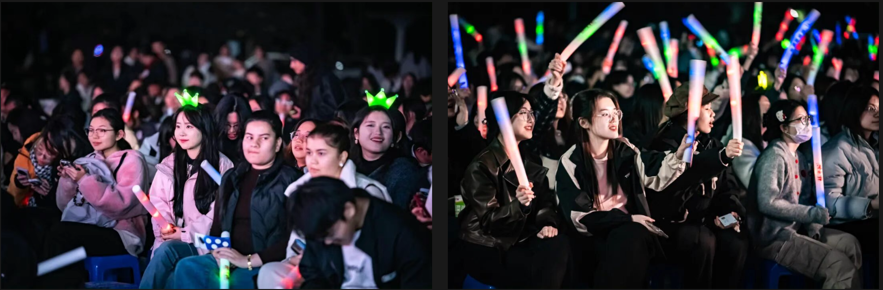 昨晚的青春歌会,是大学生活最鲜活的注脚。晚风拂过草地,舞台上乐队轮番献艺,从我的未来式到NWU,音符撞碎夜色。荧光棒汇成璀璨星海,欢呼与合唱此起彼伏,西大新生伙伴因旋律并肩摇摆。没有束缚,只剩纯粹的热爱与共鸣,这不仅是视听盛宴,更是属于西大人的独家记忆,让青春在音浪里永远滚烫。