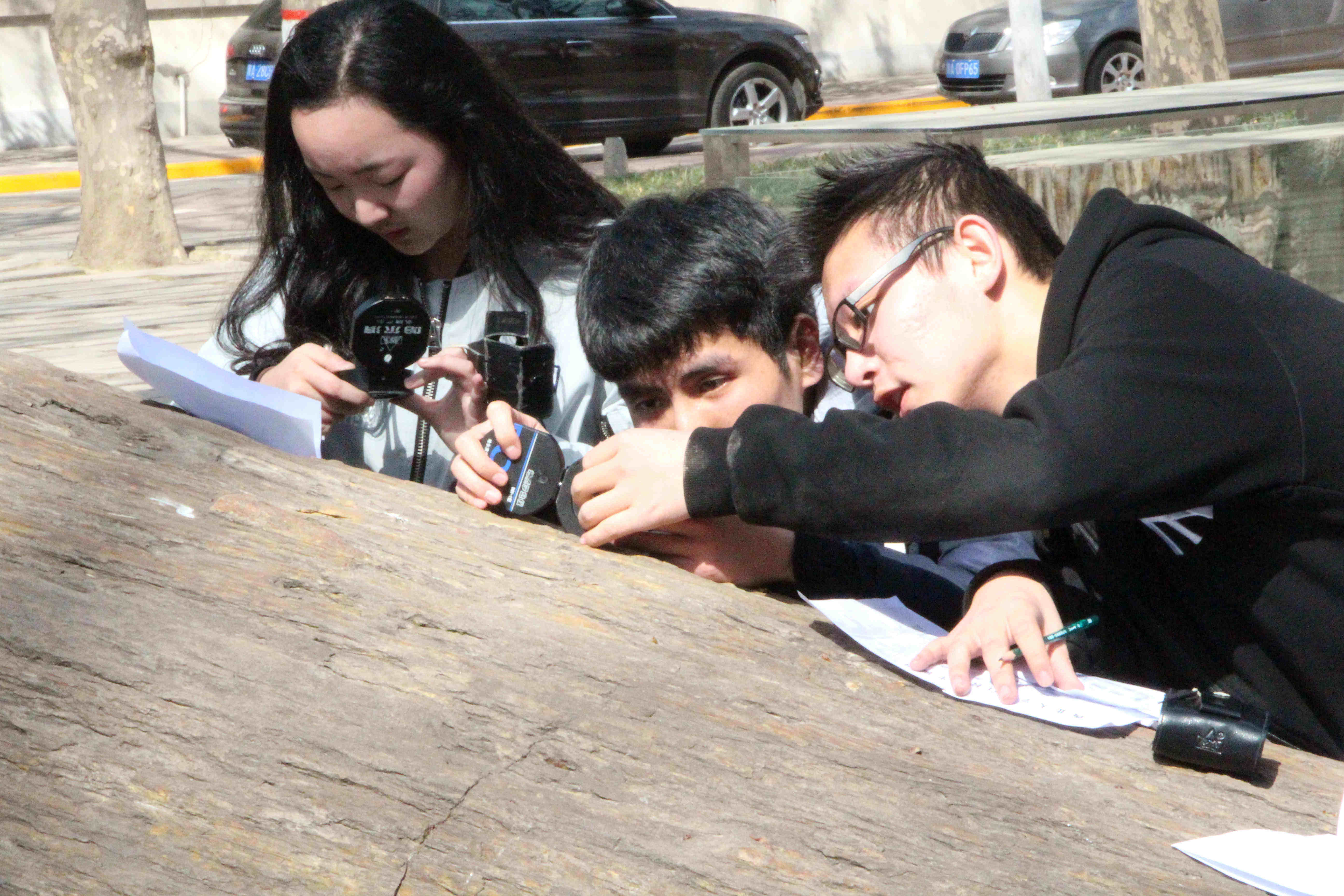 下午两点活动正式开始,简短的仪式之后,学生两人一组,领取地图,运用罗盘,按预先安排好的点位顺次寻找,直至返回终点。比赛中同学们密切配合,共同协作。两小时的比赛顺利结束,颁奖合影。大家运用罗盘等地质学科专业工具,在熟练掌握专业知识的同时,走进校园,将地质知识应用于快乐的活动中。