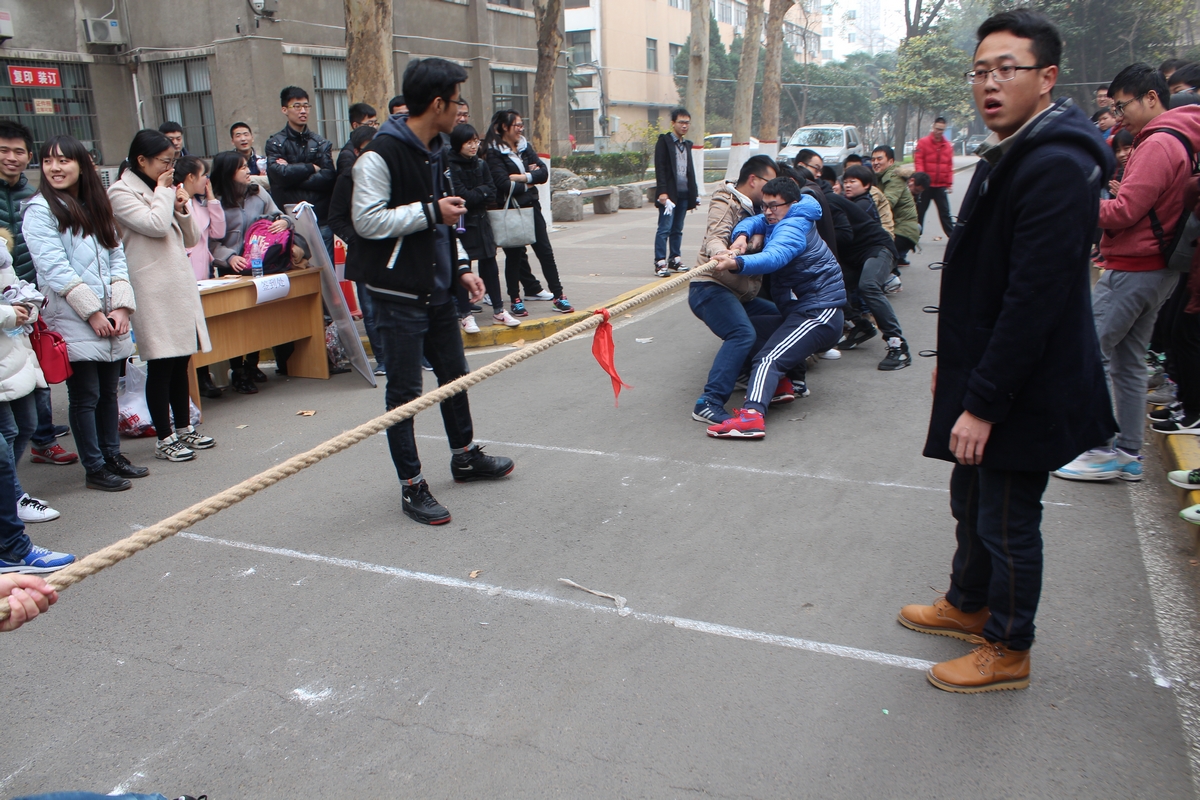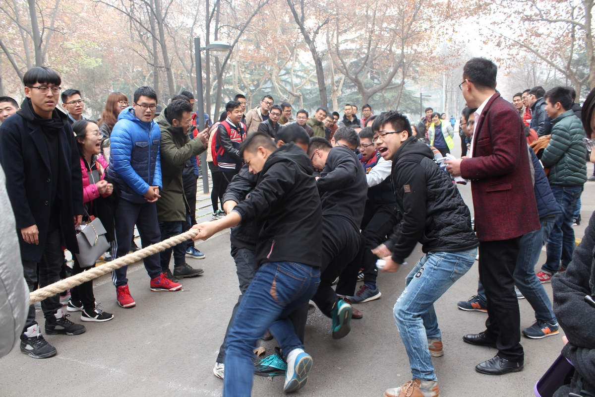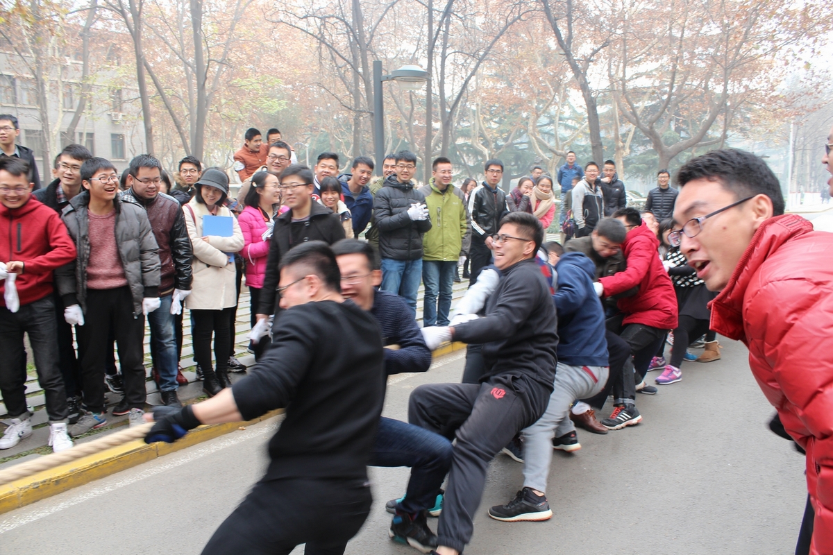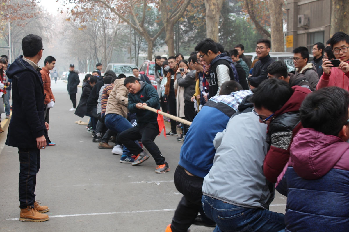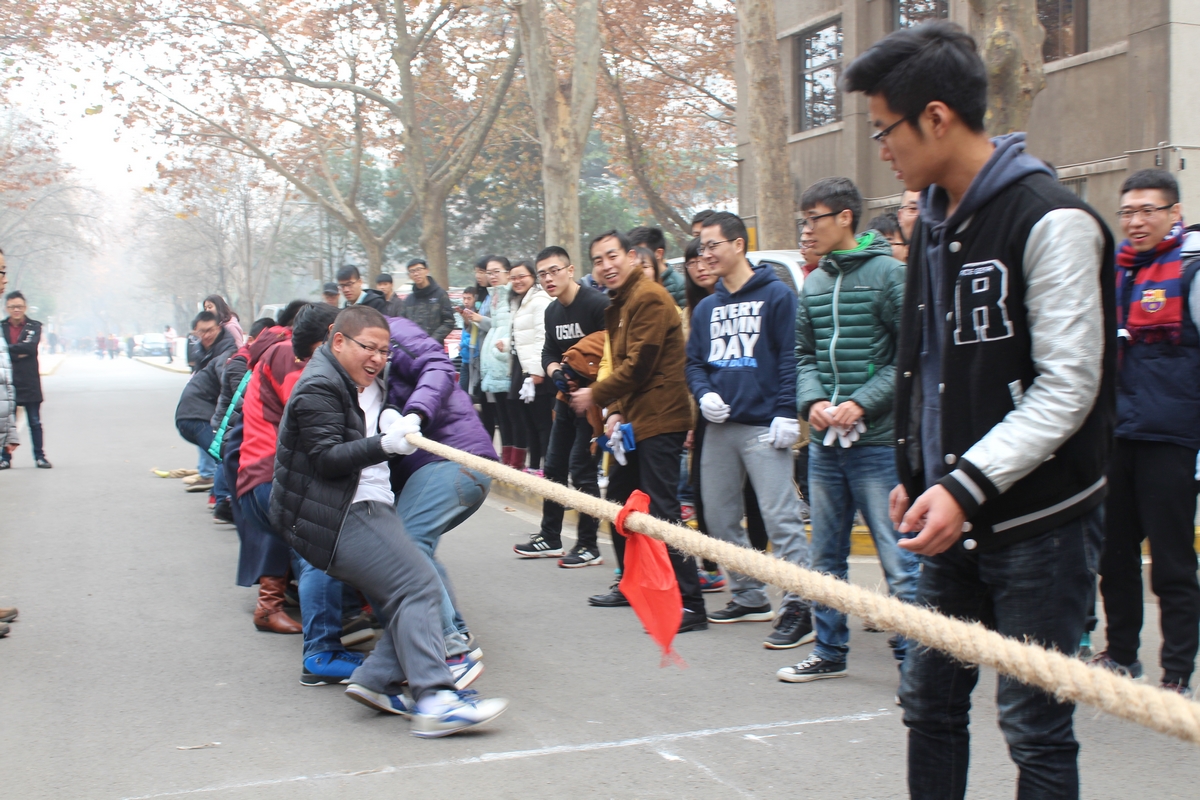 2016年12月14日中午,西北大学地质学系的在校博士生和硕士生在地质系楼前举行了第一届拔河大赛。本次大赛以促进各年级、班级间交流为宗旨,丰富学生们的校园生活为目的,以比赛的形式为学生们提供展现集体风采的舞台,通过拔河比赛发扬团队精神,增强凝聚力。全体同学纷纷以极大的热情参与到此次活动中。
