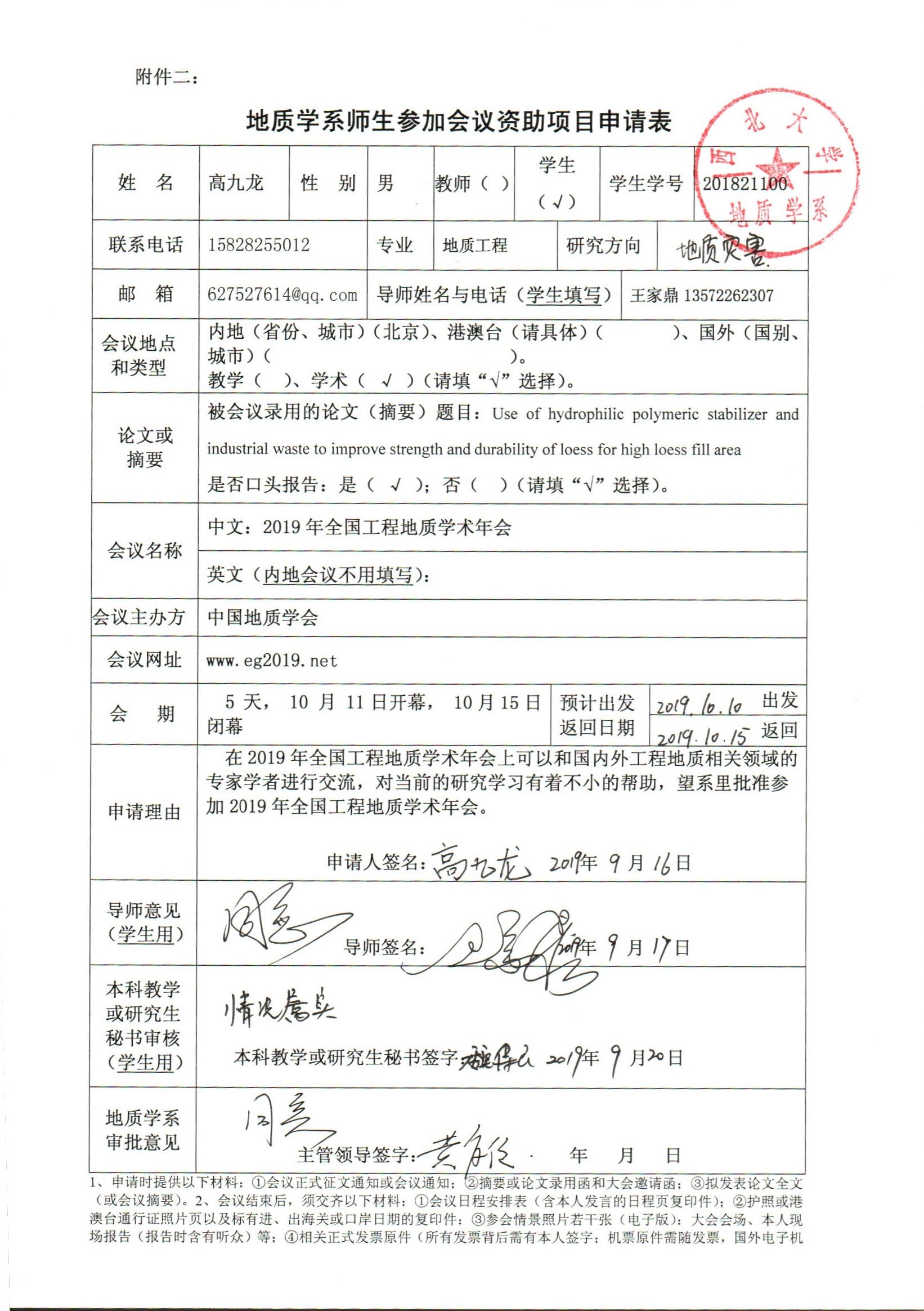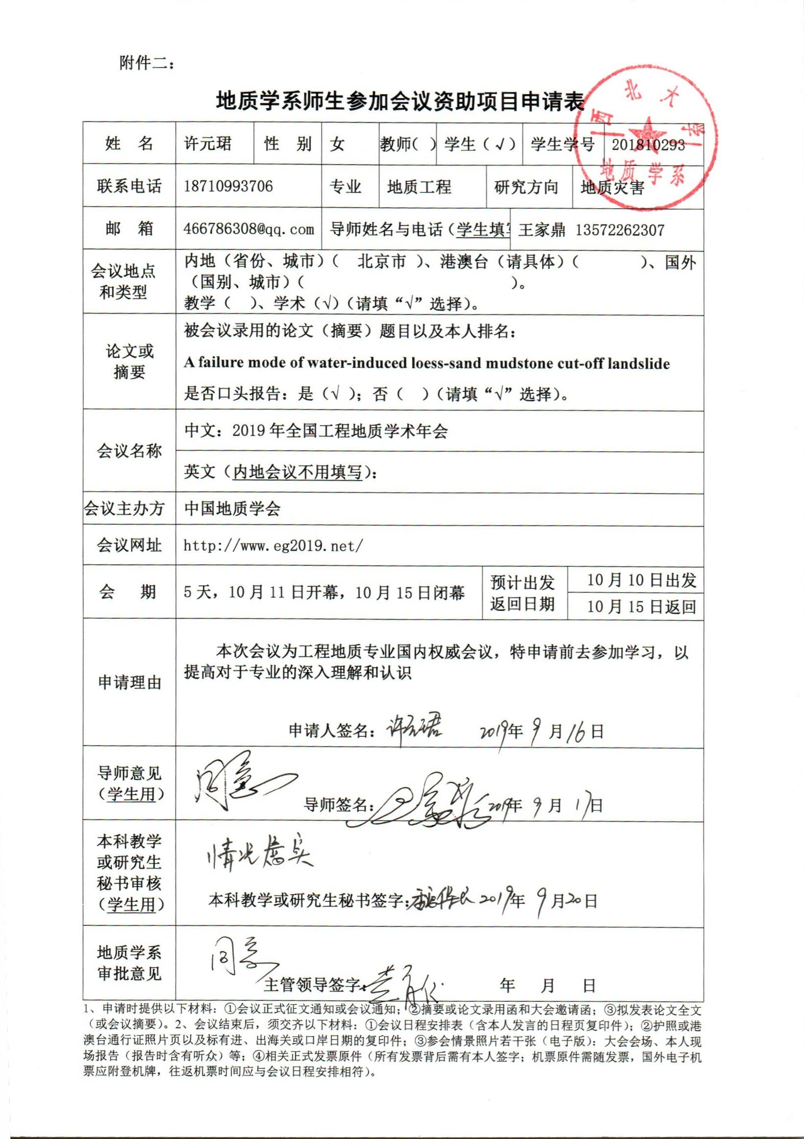 地质学系关于资助研究生许元珺等三人参加学术会议的公示