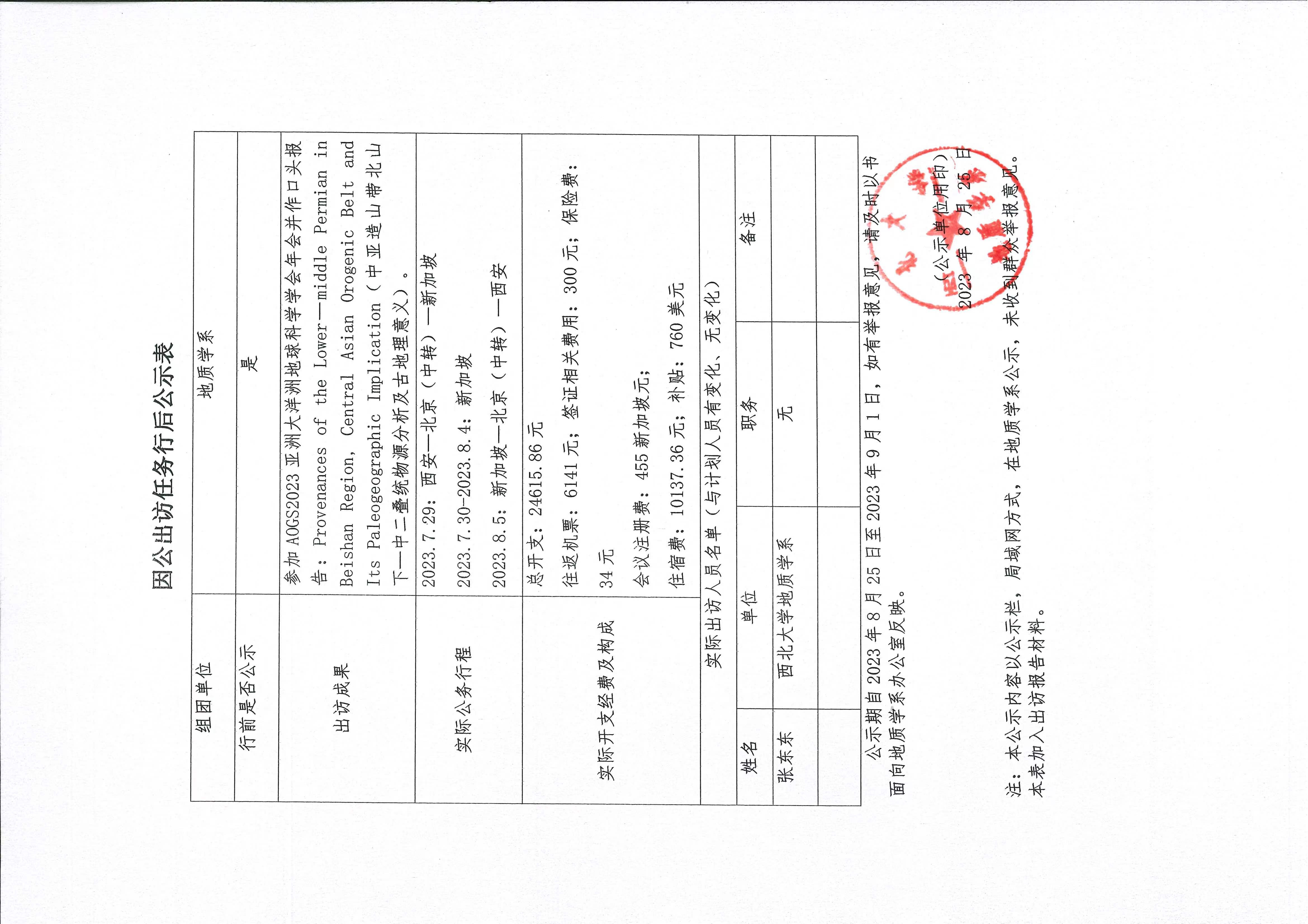 张东东因公出访行后公示