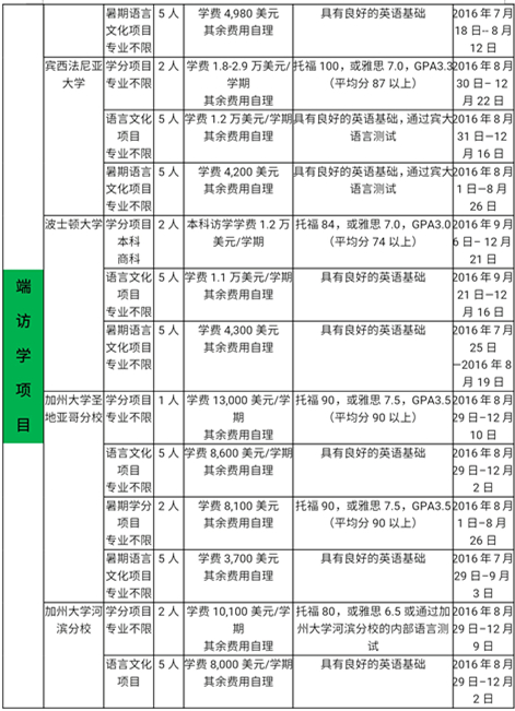 2016学生赴境外交流项目列表