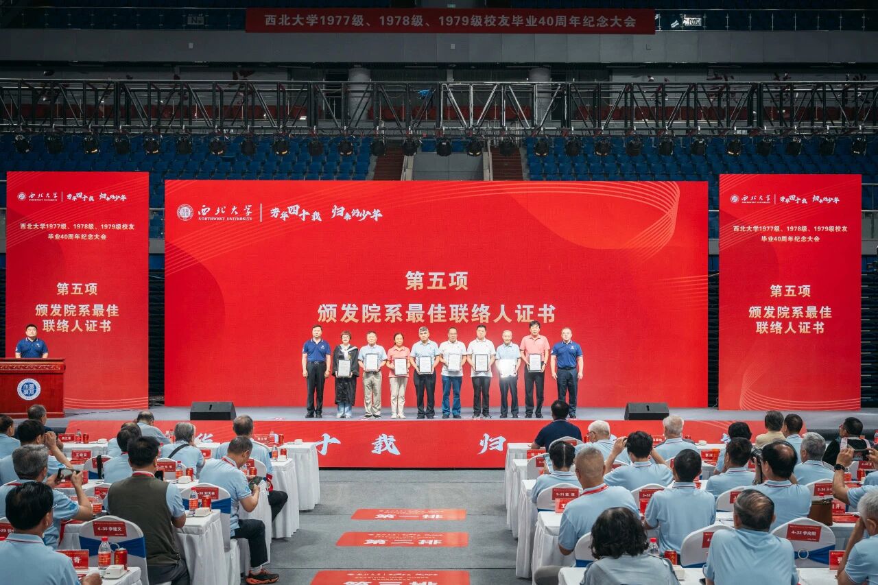 上午,系友们参加了由学校在长安校区万人体育馆举办的“西北大学1977级、1978级、1979级校友毕业40周年纪念大会暨第四届校友集中返校日活动”,并合影留念。全校1977级、1978级、1979级及其他年级返校校友以及社会各界人士代表共1100余人参加了大会。