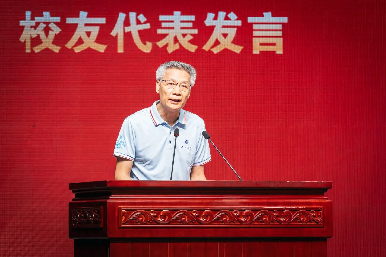 全国教书育人楷模、中国科学院院士张国伟教授作为1977级、1978级、1979级学生的教师代表发言。他深情回忆了40年前指导学生们学习时的场景。他说,77、78、79级学生具有强烈的求知愿望、艰苦奋斗的精神、积极向上的心态和敢于拼搏进取的勇气,他们专注投入、脚踏实地的作风也深深影响了自己。张国伟院士也衷心感谢系友们“为母校争了光,添了彩”,并勉励他们继续传承西大地质人优良传统,发扬“艰苦创业、自强不息、追求卓越、甘于奉献”的西大地质精神,带动后辈赓续优良传统、不断开拓创新、攀登科学高峰。