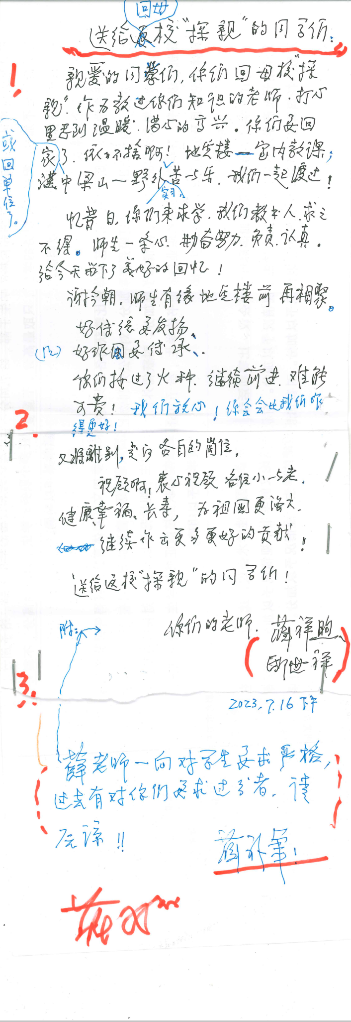 ▲教师代表薛祥煦教授、邸世祥教授致返校“探亲”同学们的一封信