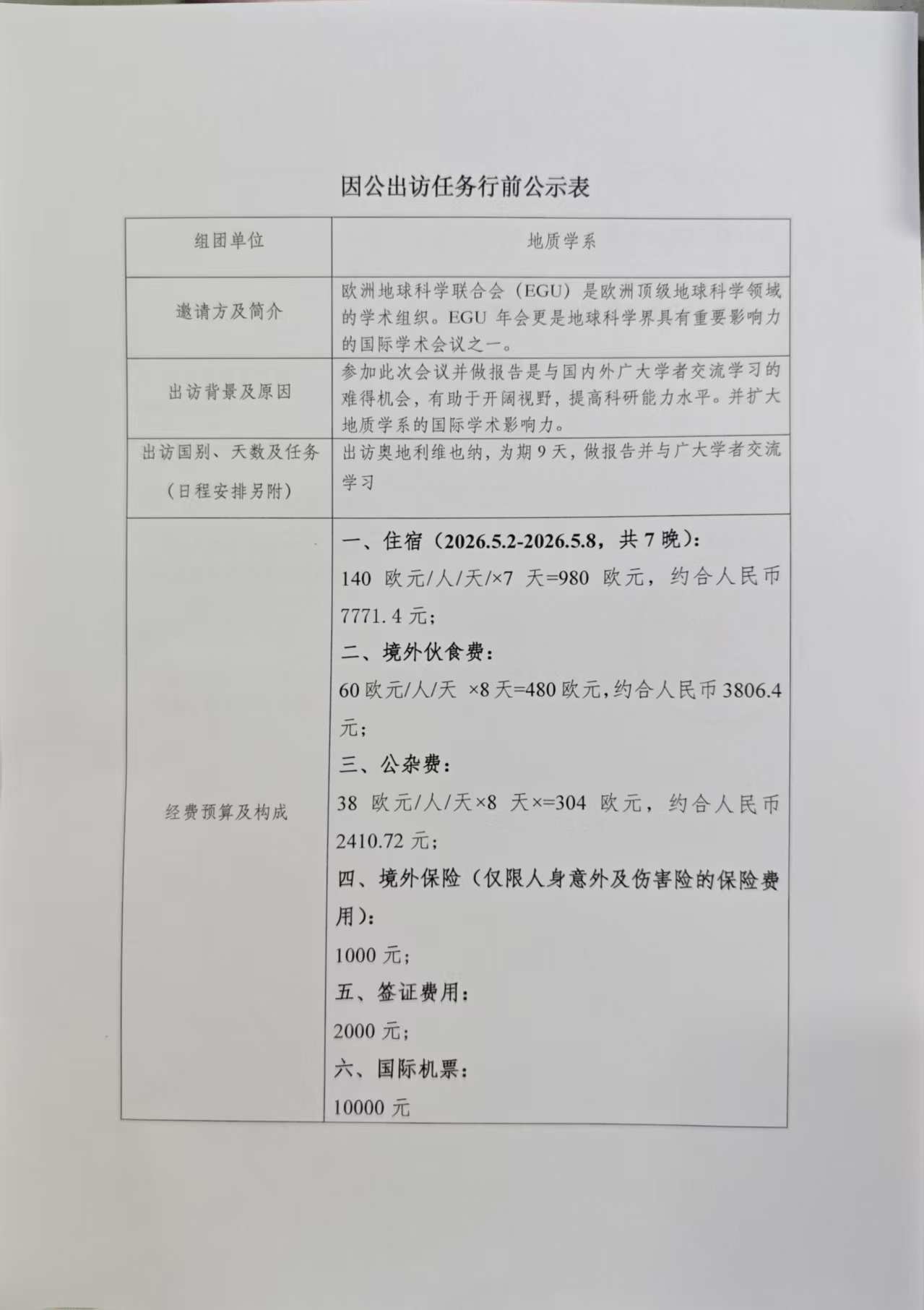 李永成等人因公出访行前公示