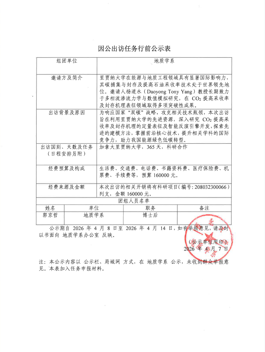 郭京哲因公出访行前公示